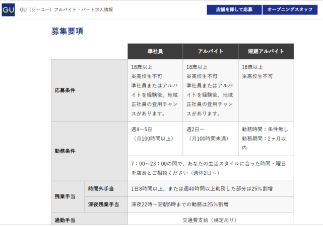 Guの準社員とは guではアルバイトの中でも、週に4日~5日・月100時間以上勤務する方々を、 「準社員(フルタイム)」と呼んでいます。 準社員として経験を積んでから地域正社員にステップアップされる方もいらっしゃいます。 メリット;